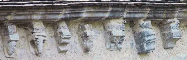 Tout au long de la nef, sous le toit, court une remarquable rangée de modillons.