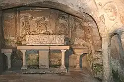Sur ce site, occupé par cette vaste nécropole, est établie une fondation paléochrétienne en partie rupestre qui aurait pu recevoir les corps de martyrs[5].