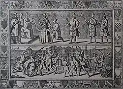 - ↑ François-Alexandre Aubert de La Chenaye-Desbois, Badier, Dictionnaire de la noblesse, contenant les généalogies, l'histoire & la chronologie des familles nobles de la France, l'explication de leurs armes et l'état des grandes terres du royaume…: On a joint à ce dictionnaire le tableau généalogique et historique des maisons souveraines de l'Europe…, Schlesinger frères, 1864, v.3, p. 28