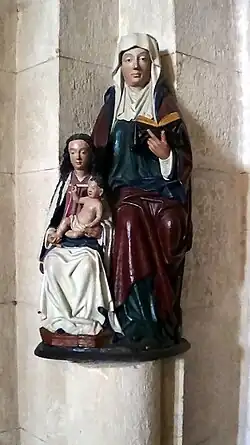 Statue « trinitaire » (figurant Jésus, sa mère Marie et sa grand-mère Anne) du XIVe siècle en bois polychrome, peinture d'origine.