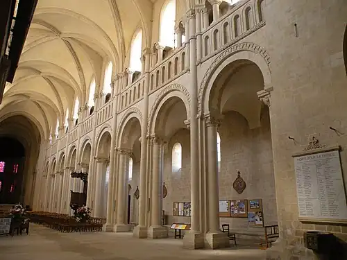 La nef est bordée d'arcades en plein cintre surmontées d'une tribune ne présentant que des arcatures aveugles[11], qui sert d'appui à la voûte d'ogive. C'est la première voûte d'ogives construite en Normandie, elle date de 1130.