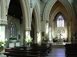 La première pierre de l'église abbatiale est bénite en 1857 et l'église est consacrée le [3]. Elle est bâtie en style anglais selon les plans d'Edward Welby Pugin, fils du fameux Augustus Welby Pugin; ce choix démontre l'optimisme de l'époque qui donnait des racines nationales au renouveau catholique d'alors en Angleterre[5].