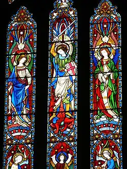 L'église est connue pour la qualité de sa statuaire et de ses vitraux. Certains montrent des anges avec des harpes, des cymbales et des orgues. On remarque un retable d'anges à l'est et une grande verrière de l'époque victorienne montrant saint Michel (patron de l'abbaye) tenant son épée et son bouclier afin de combattre le dragon, l'archange Raphaël et l'archange Gabriel avec les neuf chœurs d'anges, placés en un orchestre chantant les louanges de Dieu[6].