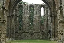 Le plan bernardin typique de l'église est celui de l'abbaye de Fontenay. La nef, d'une longueur de 52 m, terminée par un chœur à chevet plat percé de trois fenêtres, est composée de sept travées, bordée de robustes colonnes cylindriques et, de chaque côté, d'un collatéral très étroit. Le transept, à deux chapelles latérales, mesure 22 m et, à sa croisée, une tour, large et basse, a été construite, comme dans de nombreuses autres abbayes cisterciennes anglaises, malgré l'interdiction édictée par le Chapitre Général cistercien. L'église est aujourd'hui complètement dépourvue de couverture mais était couverte d'un plafond de bois.