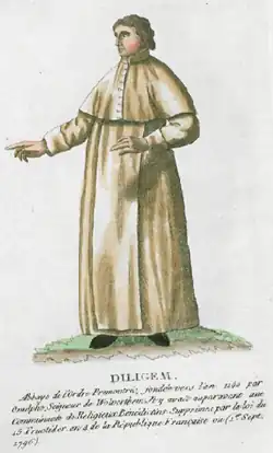- ↑ La suppression des ordres religieux est promulguée dans une loi du et, le 10 novembre, la trentaine de moines de Dileghem est chassée avec quelques vêtements et un maigre pécule pour tout viatique. Décrétés biens nationaux, les propriétés de l’abbaye — 760 hectares de terres, 14 fermes, 5 moulins — sont mises en vente publique, assortie de l’obligation de démolir les édifices religieux, c'est-à-dire l'église abbatiale, le cloître, les bâtiments conventuels et la bibliothèque.