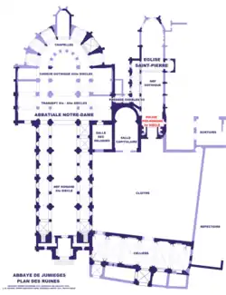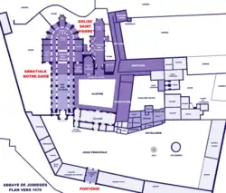 - ↑ Georges Lanfry: L'abbaye de Jumièges, Plans et documents, page:21.