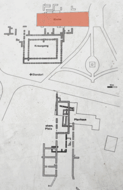 Aujourd'hui, il n'y a pas de traces visibles du monastère. Entre 1971 et 1974, quelques vestiges du monastère et de la Pfalz, avec lesquels les bâtiments du monastère étaient reliés physiquement, sont découverts lors de fouilles archéologiques, mais recouverts pour une meilleure conservation. La trace des murs est symbolisée.