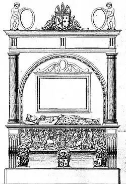 Après la translation de 1552, Henri II, roi de France fit élever un mausolée pour Louis le Pieux dans la nouvelle abbatiale, du côté de l'épître. Le nom du sculpteur n'est pas connu mais un dessin du XVIIIe siècle permet d'en apprécier la majesté. Il s'agit d'un tombeau-effigie, aux formes verticales dominantes, tombeau grandiose qui répond au goût du XVIe siècle. Moins grand que les tombeaux royaux renaissants de Saint-Denis, le monument se devait de célébrer la gloire impériale carolingienne dont le Valois se voulait l'héritier. Le gisant de Louis le Pieux est couché directement sur la dalle-couvercle et occupe quasiment toute la longueur du sarcophage antique incorporé dans le nouvel arrangement. L'empereur est couronné, il tient le sceptre dans la main droite ; sa tête est appuyée sur un coussin, les pieds se dressent sans appui. Deux colonnes engagées ou adossées reposent sur la dalle-couvercle ; elles supportent un couronnement qui termine harmonieusement le tout. La partie inférieure du tombeau est constituée du sarcophage antique, amplifié par des pilastres ou des colonnes cannelées, disposées latéralement, agrémentées de coquilles et de cartouches. La cuve repose sur trois protomés de lion à tête anthropomorphe. Les lions tiennent entre leurs pattes des écussons bipartites avec lys royal et aigle impériale[7]. Une partie du tombeau de Louis le Pieux se trouve aux musées de Metz, le reste du monument funéraire ayant été détruit pendant la Révolution.