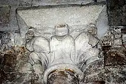 Le chapiteau est très abîmé, mais mérite attention en raison de la qualité des reliefs qui ont survécu au vandalisme.