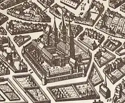 En 1586, le cardinal abbé Charles de Bourbon fait bâtir par Guillaume Marchant, le palais abbatial en brique et pierre (5-7 rue de l'Abbaye).