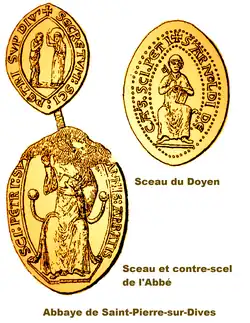 - Sceau et contre-scel de l'abbé Jean et sceau du doyen de l'abbaye de Saint-Pierre-sur-Dives, gravés pour la Société des antiquaires de Normandie[18].