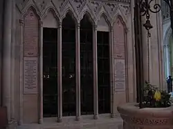- ↑ Les cendres de Jacques Le Febvre du Quesnoy sont déplacées en 1810, sur décision de l'évêque Dupont de Poursat, dans la chapelle Saint-Pierre-Saint-Paul de l'église paroissiale.