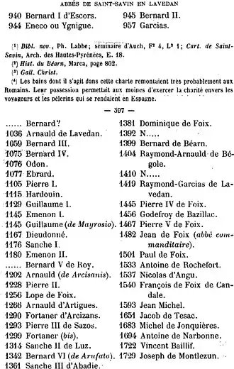 - ↑ Cartulaire de l'abbaye des bénédictins de Saint-Savin en Lavedan