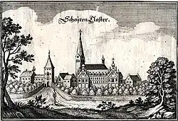 Ces moines fondateurs étaient issus et dépendaient de l'abbaye de Hirsau, célèbre pour avoir pris la défense du Pape dans la querelle des investitures. Les moines s'établissent dans le château fort[1] de la comtesse de Scheyern qui déménage alors dans le château fort de Wittelsbach, à l'origine du nouveau nom de la famille. Les Wittelsbach protégèrent particulièrement cette abbaye qui devint jusqu'en 1253 leur nécropole familiale. Le premier duc de Bavière Othon Ier de Bavière (1117-1183) y repose, ainsi que Louis Ier de Bavière (1173-1231) ou Othon II de Bavière (1206-1253).