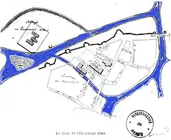L’abbaye, dont les bâtiments actuels dataient du XVIe siècle, était située sur un territoire qui s’appelait le ban de Toussaints ou le ban de l’île. En effet c'était une île entourée par des bras de la Marne qui fut patiemment relevée. Le bras sud fut comblé en 1567 pour former la rue Saint-Dominique.