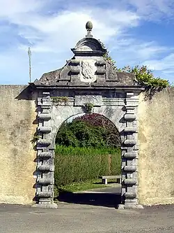 - 1 2 Panneau d'information de la porte de l'ancienne abbaye laïque d'Aramits.