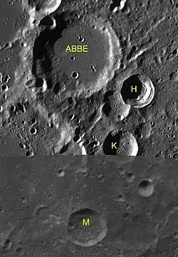 Abbe est un cratère d'impact sur la face cachée de la Lune. Le nom fut officiellement adopté par l'Union astronomique internationale (UAI) en 1970[4],[2],[3], en référence à Ernst Abbe (1840-1905)[1],[2],[3].