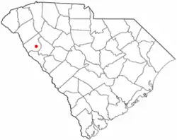La ville est située dans le nord-ouest de l'État, à 70 km au sud de Greenville et à 130 km à l'ouest de Columbia.
