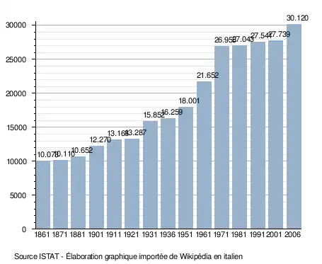 Dans les années suivantes la ville s'est développée, non seulement autour de l'église de Saint-Pierre, mais plus au sud, où, près de l'actuelle église Santa Maria Vecchia, se dressait un petit château. Cette ville est devenue le centre principal, tandis que la vieille banlieue continue de se développer avec une certaine autonomie, géographiquement toujours visible aujourd'hui.