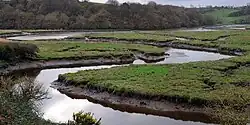 Ses premiers affluents sont le Mendy ou ruisseau de Plabennec, le ruisseau de Saint-Sébastien, le ruisseau du Lothunou et le ruisseau de Penhoat pour la rive droite ; le ruisseau de Bourg-Blanc ou Benouig, le Kerascoët qui arrose Coat-Méal et le Garo, qui vient de Milizac, pour la rive gauche ; ce n'est alors pour sa partie fluviale qu'un très modeste fleuve côtier d'environ 2 mètres de large.