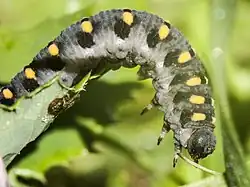 Les larves se développent sur divers végétaux herbacés[1] notamment sur la Knautie des champs (Knautia arvensis) et la Succise (Succisa pratensis)[2].