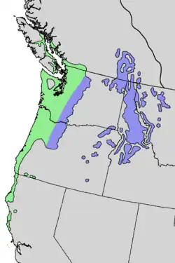 Le Sapin de Vancouver est originaire de l'Amérique du Nord. Son aire de répartition est divisée en deux. On le trouve d'une part sur la côte Pacifique, de l'île de Vancouver et de la Colombie-Britannique jusqu'au Nord-Ouest de la Californie, en passant par les États de Washington et de l'Oregon, mais aussi à l'intérieur des terres, à l'est de l'Idaho et du Montana.