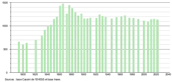 - ↑ Fiches Insee - Populations de référence de la commune pour les années 2006, 2007, 2008, 2009, 2010, 2011, 2012, 2013, 2014, 2015, 2016, 2017, 2018, 2019, 2020, 2021 et 2022.