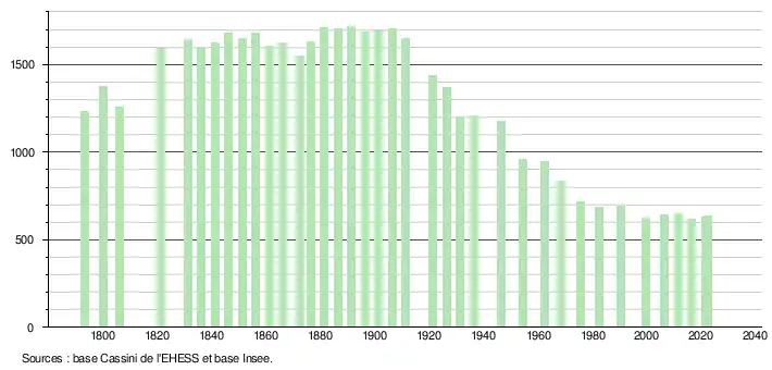 - ↑ Fiches Insee - Populations de référence de la commune pour les années 2006, 2007, 2008, 2009, 2010, 2011, 2012, 2013, 2014, 2015, 2016, 2017, 2018, 2019, 2020, 2021 et 2022.