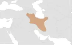 Cette espèce se rencontre de 2 300 à 3 300 m d'altitude en Turquie, en Arménie, en Azerbaïdjan, en Iran et au Turkménistan[1].