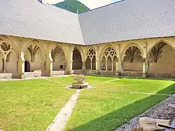 - Cloître gothique du XIVe siècle présentant un ensemble de peintures murales figurant le cycle Marial, parmi celles-ci l'annonciation, la nativité, la fuite en Égypte ou les noces de Cana. Ces peintures datent vraisemblablement de la première moitié du XVe siècle et illustrent l'art de cour mais aussi par de nombreux détails l'environnement local. L'iconographie s'inscrit dans un style gothique tardif piémontais rappelant l'école florentine. On a évoqué à leur sujet Giacomo Jaquerio, maître turinois.