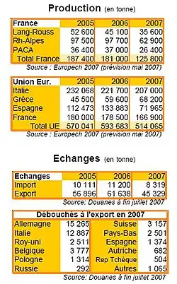 - ↑ Chiffres clés 2017, fruits et légumes. France AgriMer, décembre 2018