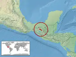 Cette espèce est endémique du Chiapas au Mexique. Elle se rencontre entre 2 000 et 3 000 m d'altitude dans la Meseta Central de Chiapas[1],[2].