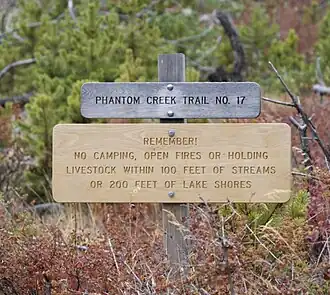 - ↑ "Phantom Creek Trail to Slough Lake." REI, 2008. Web. 12 Nov. 2012. <http://www.rei.com/guidepost/detail/montana/hiking/phantom-creek-trail-to-slough-lake/40628>.