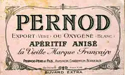 Lorsque la production d'absinthe commence à être la cible d'une vive campagne contre ses méfaits dès 1907, Jules-Félix Pernod a succédé à son père à la tête de l'entreprise familiale. Quand sa production est interdite par une loi du Parlement français votée le [30], il est le premier à se reconvertir en fondant en 1918 la marque « Anis Pernod » qui produira le premier pastis commercialisé[31]. Son usine de Montfavet met aussi en marché d'autres produits anisés ou non comme le « Vin Pernod », le « Kunnel Korta », le « Velours » sans alcool ou toute une gamme d'anis à 30, 32, 35 et 40°[30].[pertinence contestée]