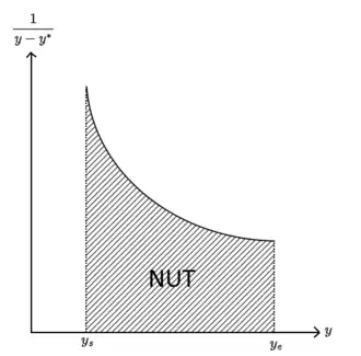 Le plus souvent, il est impossible de calculer analytiquement cette intégrale, soit car l'expression de est inconnue, soit car n'a pas de primitive simple. La détermination du NUT est alors graphique, en traçant , puis en déterminant l'aire sous la courbe, par exemple grâce à la méthode des trapèzes.