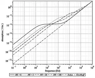 Cet effet est négligeable pour des fréquences supérieures à 10-100 kHz suivant l'humidité relative. En deçà de 1-10 kHz il est prépondérant. Il est donc dominant pour les infrasons. Sa faible valeur est liée à celle du quotient .
