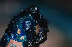 - ↑ La solution aqueuse diluée est évidemment bleue, du fait de la présence d'ions cuivriques Cu2+ solvatés par l'eau.