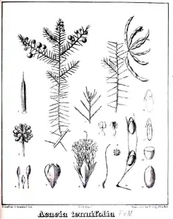 - ↑ Timothy J. Entwisle, Bruce R. Maslin, Richard S. Cowan et Arthur B. Court, « Acacia aculeatissima », Royal Botanic Gardens Victoria (consulté le )