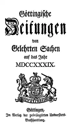 Elle édite depuis 1753 les Göttingische Anzeigen von gelehrten Sachen (journal créé en 1739 sous le titre Göttingische Zeitung et dirigé par von Haller depuis 1747) renommé Göttingische Gelehrte Anzeigen (de) en 1802. C'est la plus ancienne revue scientifique en allemand encore publiée de nos jours.