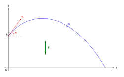 qui est l'équation d'une parabole. Si ou si α = π/2 + kπ, on se retrouve dans le cas précédent du MRUA d'axe z.