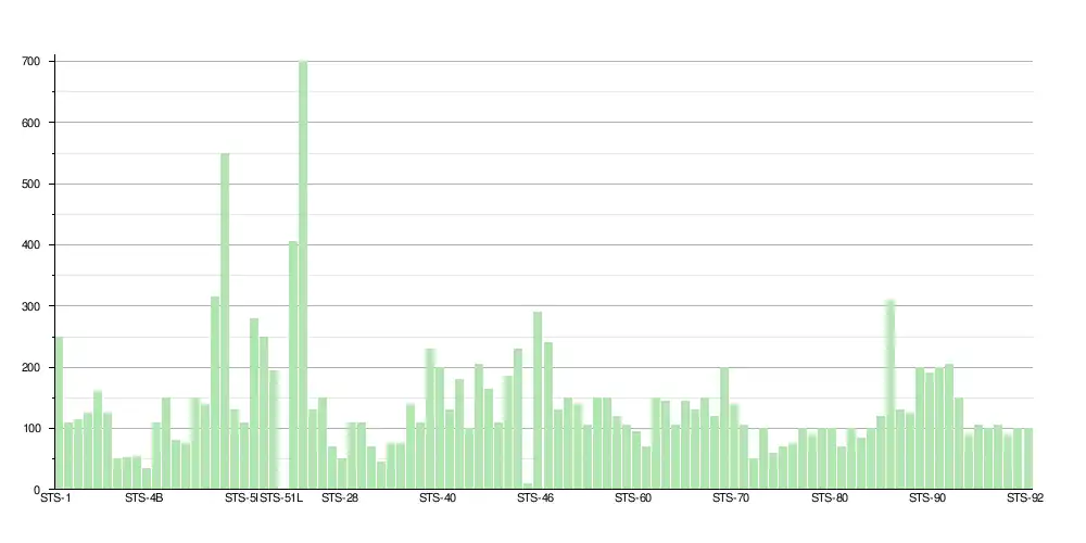 Cent cinquante neuf impacts constatés sur le bouclier thermique de la navette. Deux trous dans la mousse isolante du réservoir externe de 20 cm et 30 cm sont identifiés comme la cause des impacts. Première fois qu'aucune action correctrice n'est apportée et que l'incident est classé comme inexpliqué / isolé. La mission suivante STS-45 est lancée avant que l'incident ne soit clos. | |