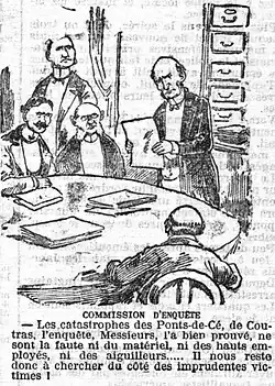 Ainsi, dans L'Intransigeant, Henri Rochefort affirme qu'avec « l'affreuse catastrophe des Ponts-de-Cé », « le gouvernement vient de trancher lui-même la question du rachat des chemins de fer »[41], alors que Le Figaro conclut ironiquement « Gageons que cette preuve nouvelle de l'incapacité de l'Etat à exploiter une industrie n'empêchera pas les amateurs de rachat de réclamer que tous les chemins de fer soient administrés et surveillés comme la ligne de Poitiers à Angers »[42].