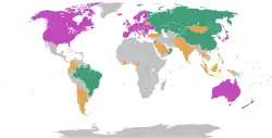 - Union européenne (15 membres) : Allemagne, Autriche, Belgique, Danemark, Espagne, Finlande, France, Grèce, Irlande, Italie, Luxembourg, Pays-Bas, Portugal, Royaume-Uni, Suède :
