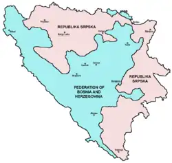 Signé en décembre 1995, l’accord de Dayton a confirmé la souveraineté de la république de Bosnie-Herzégovine, reconnue dès 1992 par la communauté internationale, et a officialisé sa nouvelle appellation : Bosnie-Herzégovine. Il a contraint la Serbie et la Croatie à reconnaître officiellement l’intégrité territoriale de cet État et à cesser tout soutien aux entités sécessionnistes présentes sur son territoire[30].