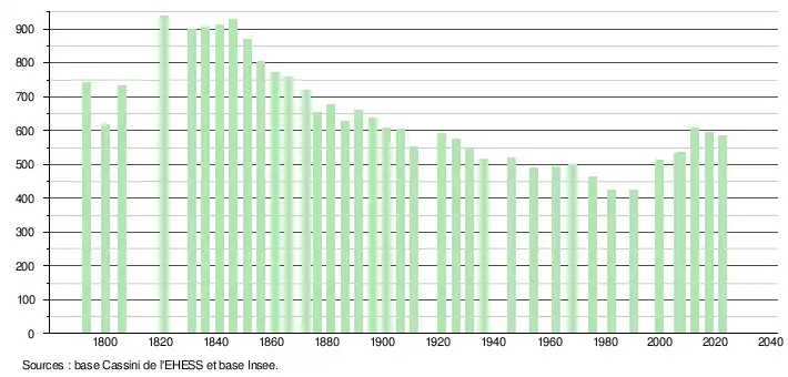 - ↑ Fiches Insee - Populations de référence de la commune pour les années 2006, 2007, 2008, 2009, 2010, 2011, 2012, 2013, 2014, 2015, 2016, 2017, 2018, 2019, 2020, 2021 et 2022.