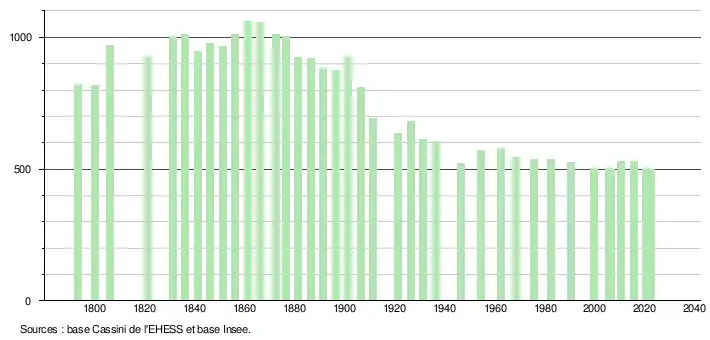- ↑ Fiches Insee - Populations de référence de la commune pour les années 2006, 2007, 2008, 2009, 2010, 2011, 2012, 2013, 2014, 2015, 2016, 2017, 2018, 2019, 2020, 2021 et 2022.