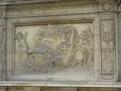 - ↑ Réplique en résine de 1990 de la statue de 1850 détruite en 1942.