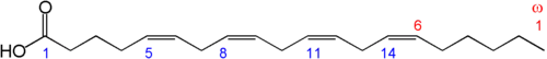 Nomenclature des atomes de carbone de l'acide arachidonique.