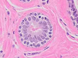 Exemple : acini des glandes salivaires sublinguales, bien que quelques acini séreux soient également présents dans celles-ci.