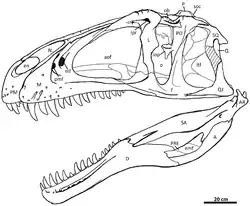 - ↑ (en) Stephen L. Brusatte, Roger B. J. Benson, Daniel J. Chure, Xing Xu, Corwin Sullivan et David W. E. Hone, « The first definitive carcharodontosaurid (Dinosauria: Theropoda) from Asia and the delayed ascent of tyrannosaurids », Naturwissenschaften, vol. 96, no 9, , p. 1051–1058 (PMID 19488730, DOI 10.1007/s00114-009-0565-2, Bibcode 2009NW.....96.1051B, hdl 20.500.11820/33528c2e-0c9c-4160-8693-984f077ee5d0